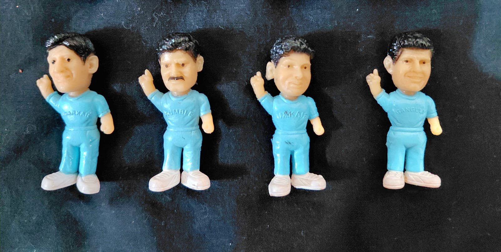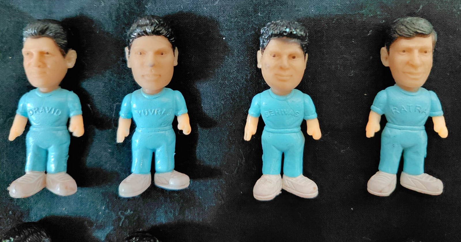 COLGATE INDIAN CRICKET TEAM MINIATURE FIGURES, POPULAR COLLECTIBLES that were offered as a freebie with COLGATE TOOTHPASTE BOXES in the early 2000s, SPECIFICALLY around the time of the 2003 CRICKET WORLD CUP.