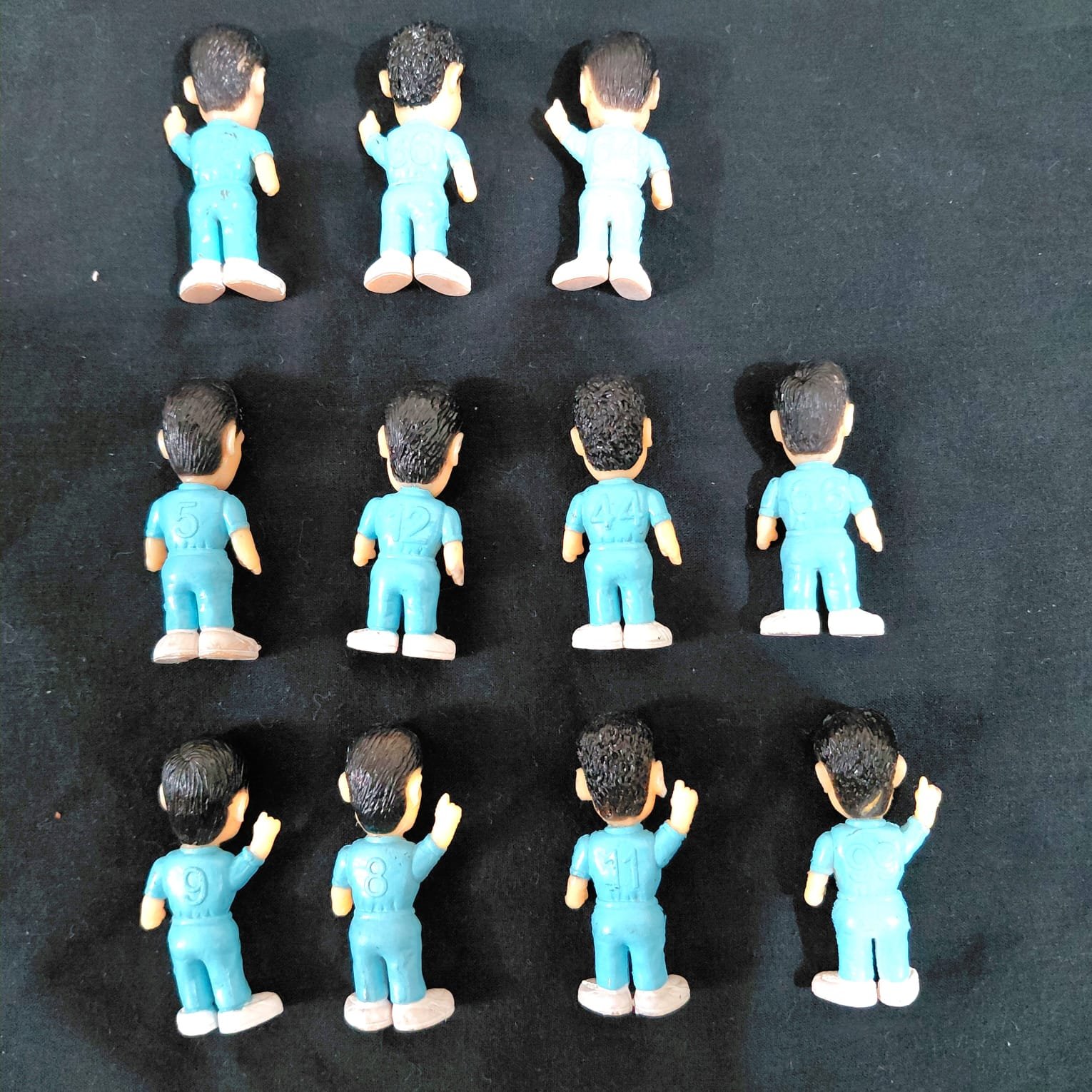 COLGATE INDIAN CRICKET TEAM MINIATURE FIGURES, POPULAR COLLECTIBLES that were offered as a freebie with COLGATE TOOTHPASTE BOXES in the early 2000s, SPECIFICALLY around the time of the 2003 CRICKET WORLD CUP. THEY are 4.5 cm in length and are now CONSID